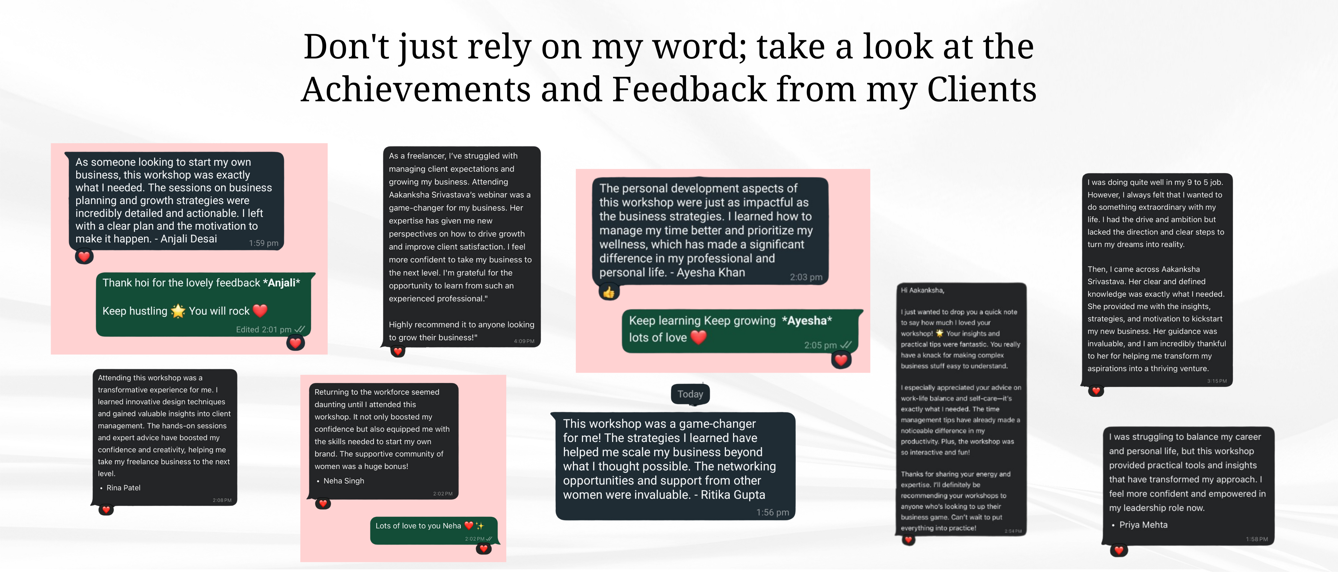Her workshops are more than just lessons—they’re a chance to join a friendly and supportive community where your goals are taken seriously. These workshops focus on boosting your confidence and guiding you through practical steps toward success.